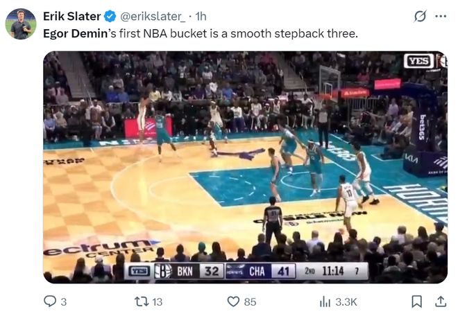 北京时间10月23日,NBA常规赛,篮网客场117-136惨败黄蜂。这场比赛篮网首节就落后6分,半场打完落后到17分,第三节努力追分也未果,末节再度被拉开,篮网本赛季的任务就是继续摆烂,所以他们惨败是很正常的,只要有亮点就行,亮点就是八号秀杰明。