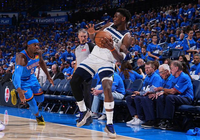 森林狼的比赛过程非常不稳定,举两个例子,球队核心爱德华兹,本赛季在场时百回合净效率值+4.4,他不在场时球队净效率值+7.8,于是On-Off值是-3.4。球队名义上唯一的控卫康利,确实老了,打不动了,On-Off值是-6.8,本赛季已经退化到场均5.5分3.2助攻。森林狼矮子里拔将军,将迪文岑佐推到球队控卫位置上,场均13.7分3.7助攻,除了一个兰德尔,森林狼没有真正的组织点。好的方面在于,他们确实打得很坚韧,球队两项命中率也都在联盟前五之列,但他们这种打法消耗太大,高端局节奏会很乱。