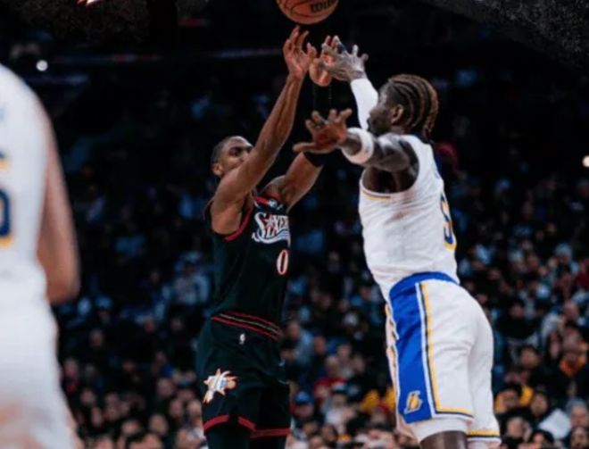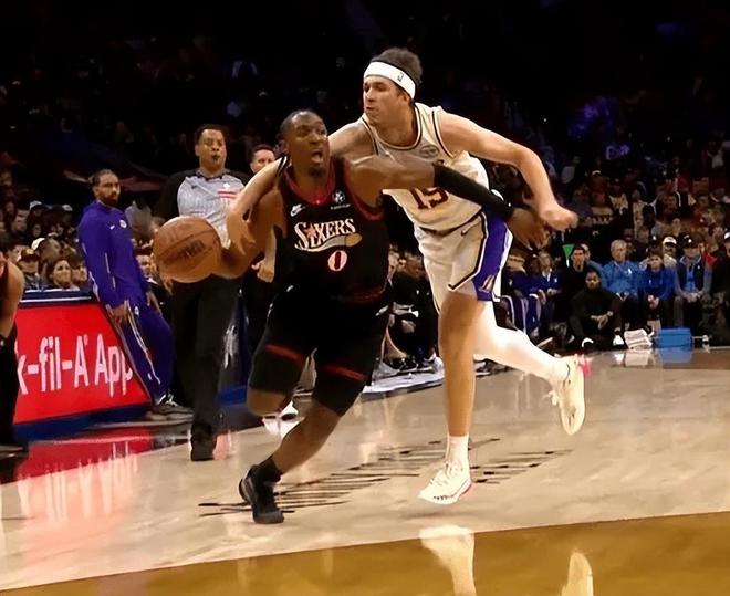 第四节决战,恩比德顶着艾顿杀进内线,上篮偏出自己还失衡摔倒,有点喜剧人的意思了。马克西扛着里夫斯失衡下仍中投命中,76人追到2分分差,打停湖人。东契奇和詹姆斯连续突破得手,随后詹姆斯先命中长两分再中三分,已经砍下24分6篮板6助攻,最终,湖人111-108逆转76人,继续巩固西部第二的优势。
