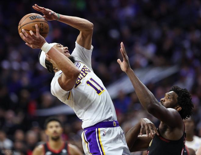 末节初段,恩比德和詹姆斯回来带队,大帝连得4分,老詹助攻艾顿空接暴扣,然后自己进攻犯规。两队陷入艰苦拉锯战,马克西对抗打进,湖人喊停换回东契奇。东契奇一上来就助攻艾顿吃饼,庄神篮下扣篮,东契奇背打格莱姆斯得手,100-96费城也主动喊个暂停。暂停回来,乔治站上罚球线,老詹连得5分,格莱姆斯三分死死咬住。双方争夺白热化,恩比德关键中投追平。但关键时刻,詹姆斯又是连得5分。马克西三分续命,东契奇两罚两中锁定胜局。