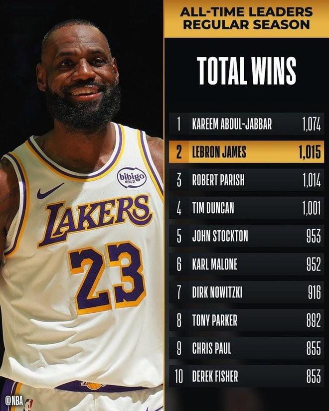 同时詹姆斯生涯胜场数升至1015场,超越帕里什独占NBA历史第二,仅次于天勾贾巴尔的1074场。
